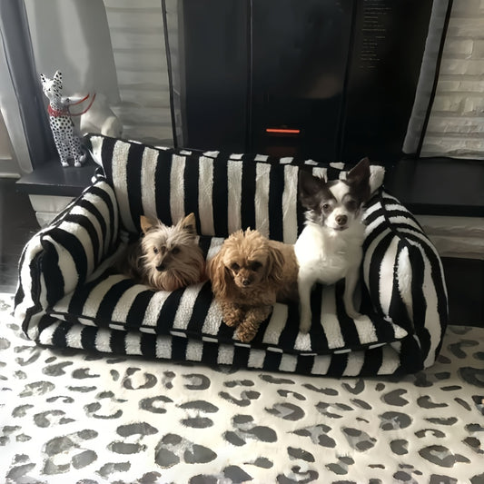 Canapé Double Coussin à Rayures pour Chien et Chat