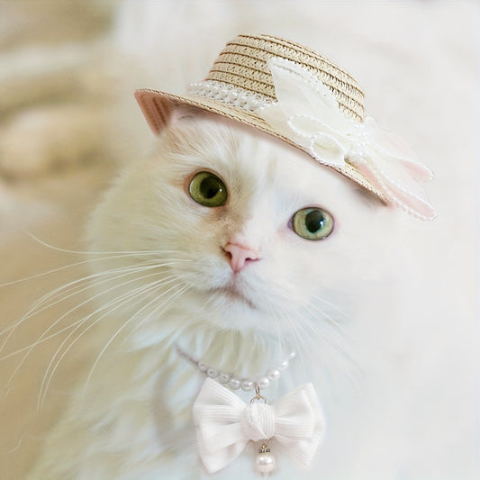 Set Collier et Chapeau Élégance Perle pour Chiens et Chats