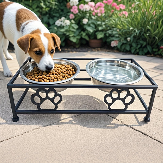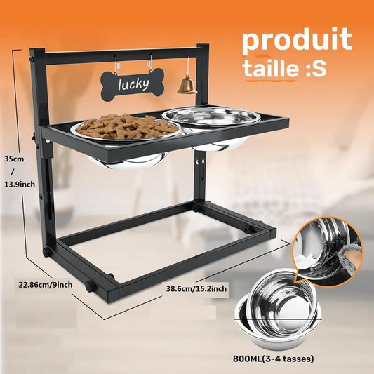 Support repas en métal ajustable avec gamelles inox pour Chien