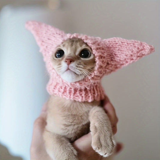 Bonnet Tricoté Elfique pour Chats – Chapeau Fantaisie en Maille Acrylique