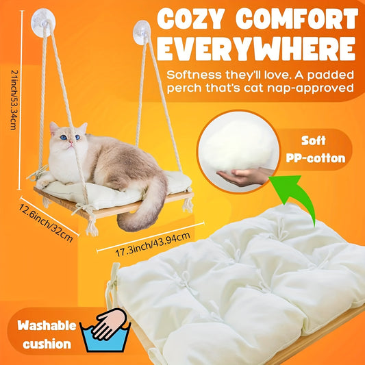 Hamac de Fenêtre en Bois avec Coussin Douillet pour Chats