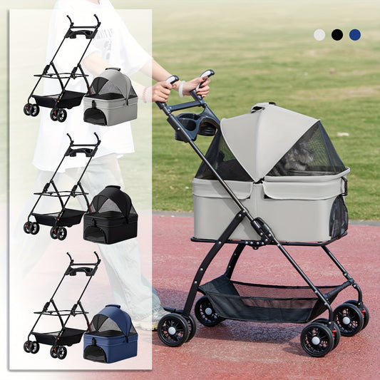 Poussette Multifonction 3-en-1 avec Panier Amovible pour Animaux