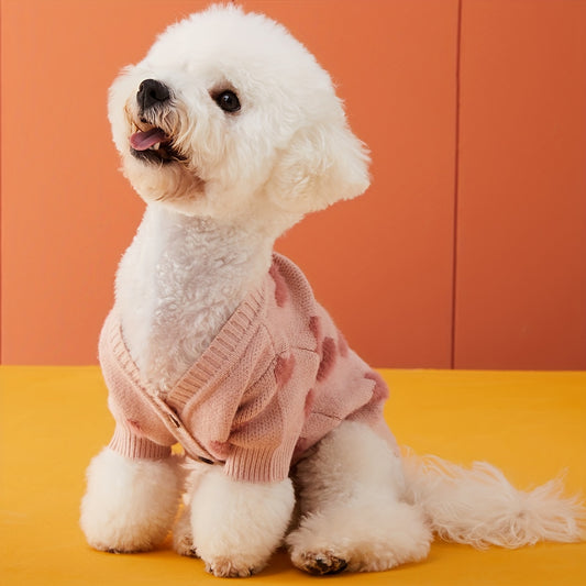 Cardigan Rose à Cœurs pour Chiens et Chats – Tricot Doux Boutonné