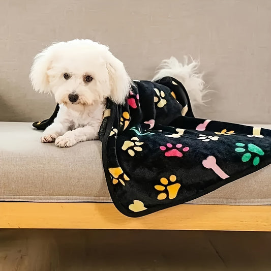 Couverture Flanelle Ultra Douce à Motifs Pattes et Os pour Chien
