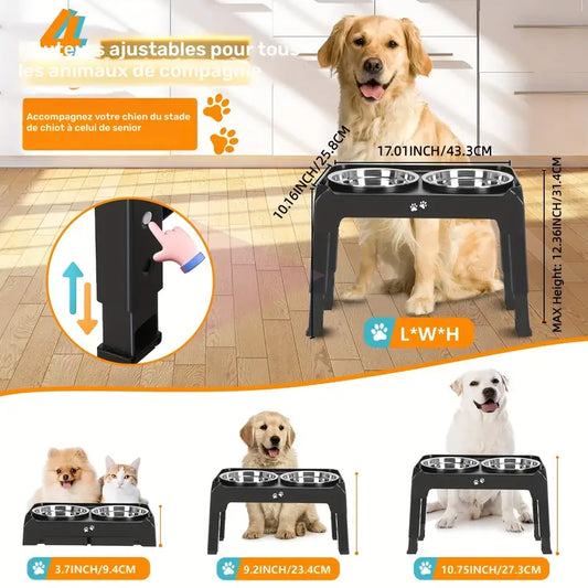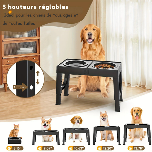 Gamelle surélevée ajustable avec double bol inox pour chien