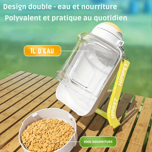 Gourde portable 2-en-1 pour eau et croquettes (1000ml + 300g)
