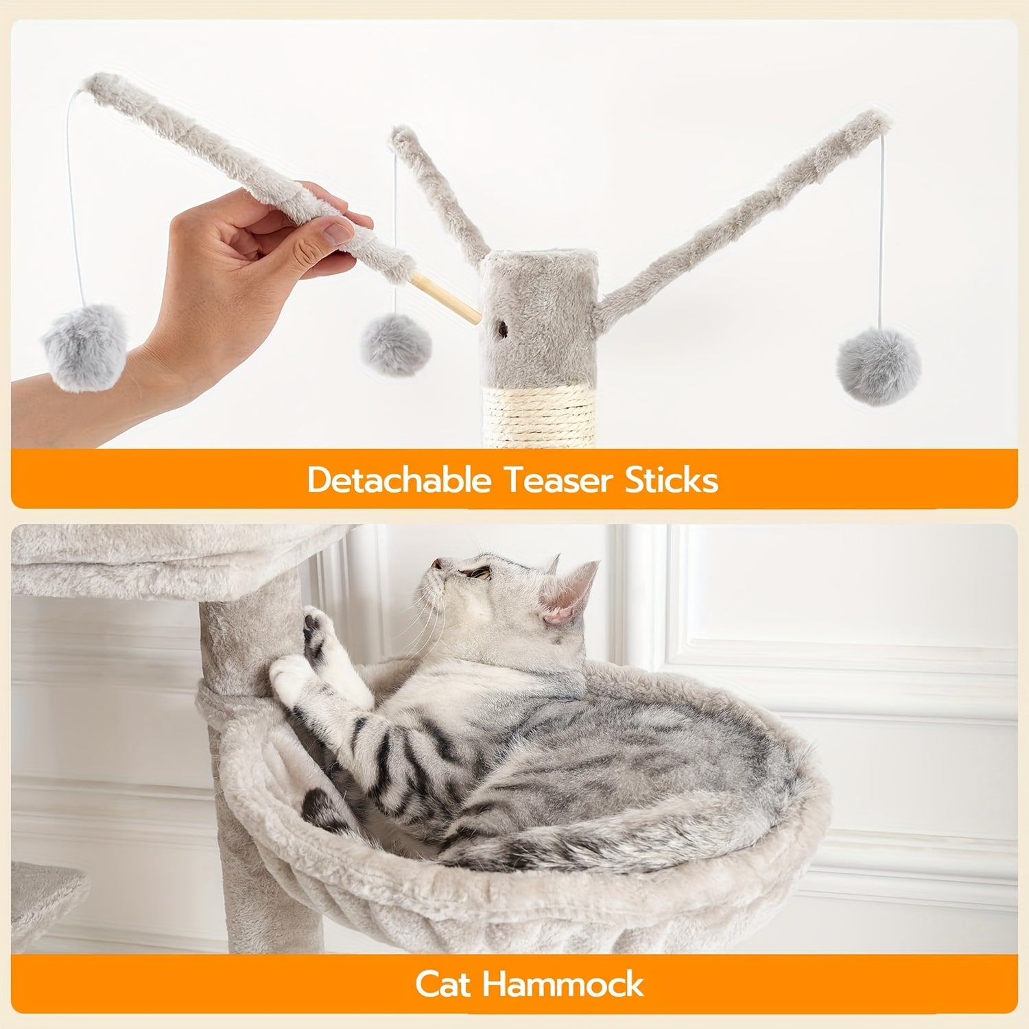 - Forme : Structure multi-niveaux avec perchoirs, hamac et meuble fermé