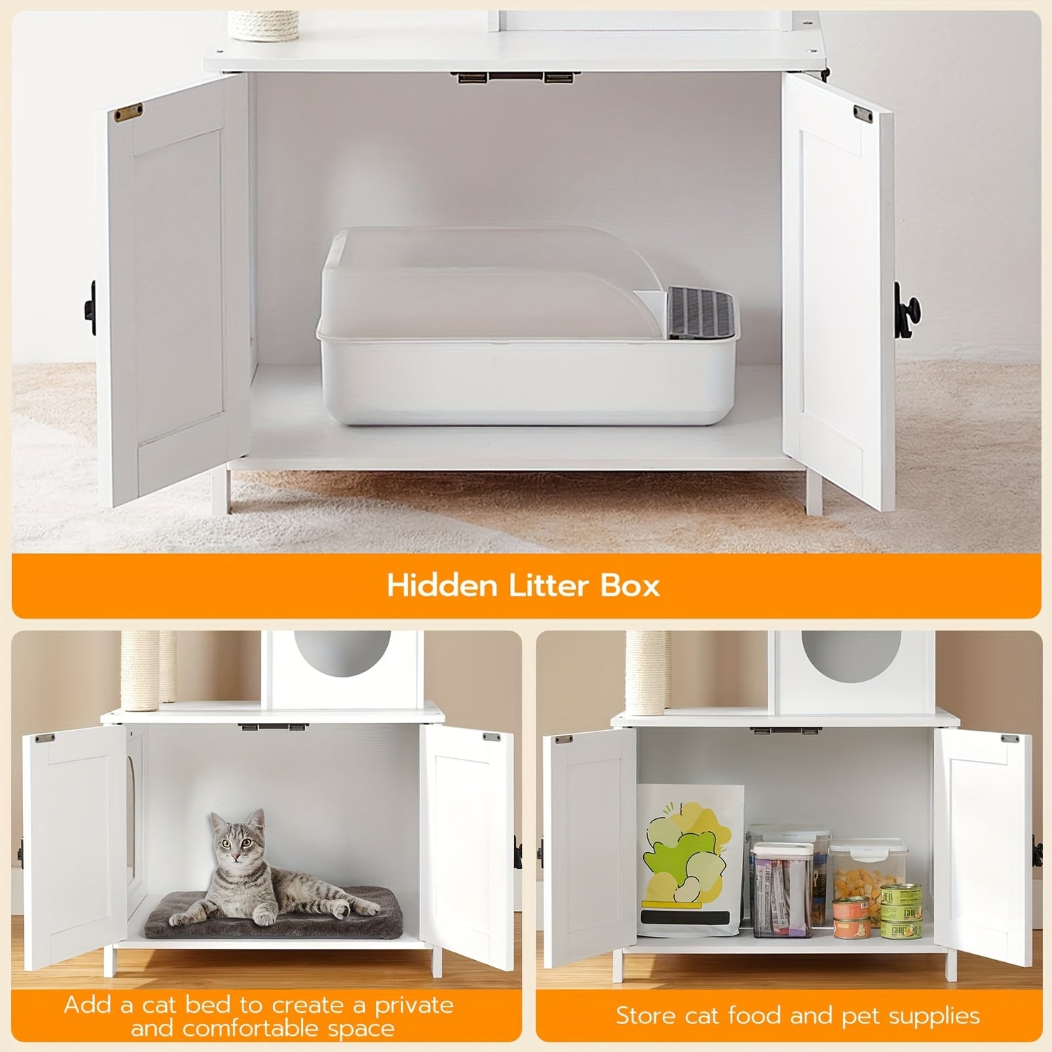 Arbre à Chat Blanc Multi-Niveaux avec Meuble Litière Intégré