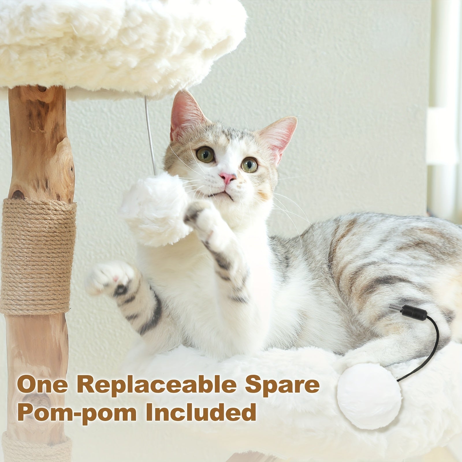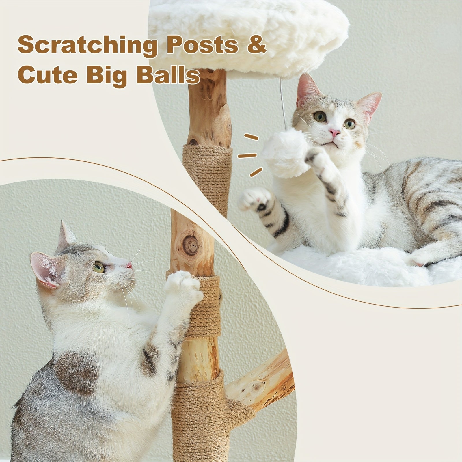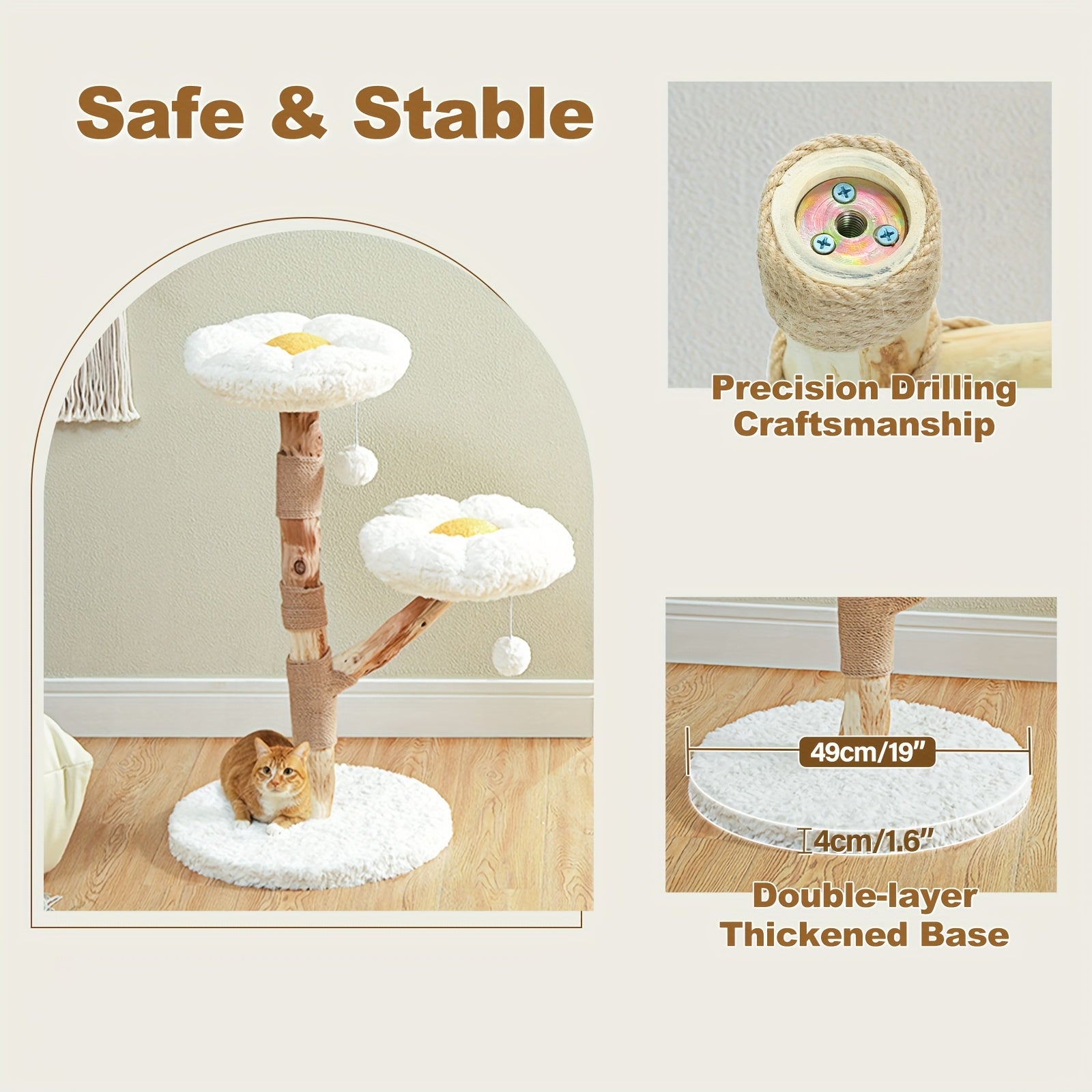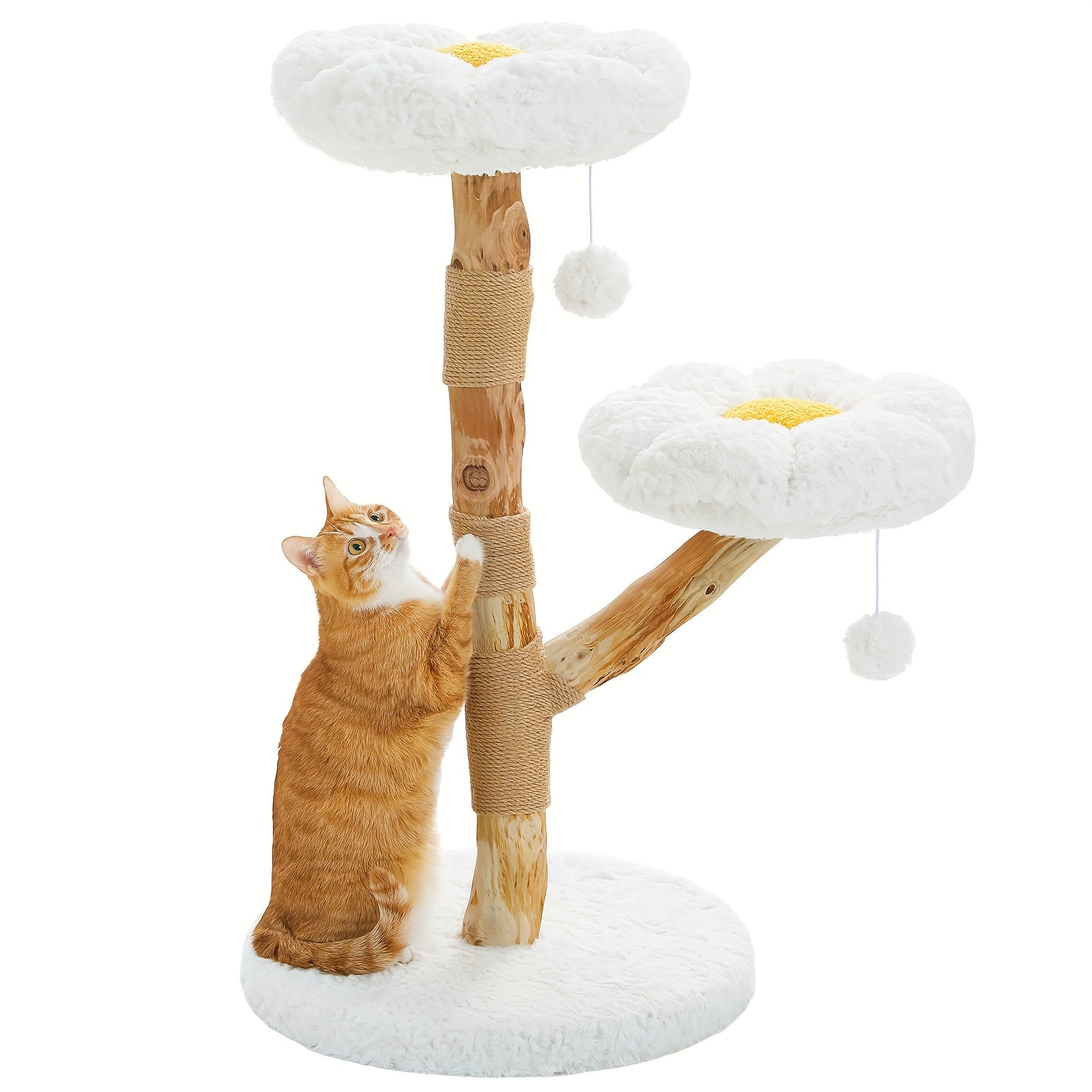 Arbre à Chat Fleur en Bois Massif avec Perchoirs et Jouets Suspendus
