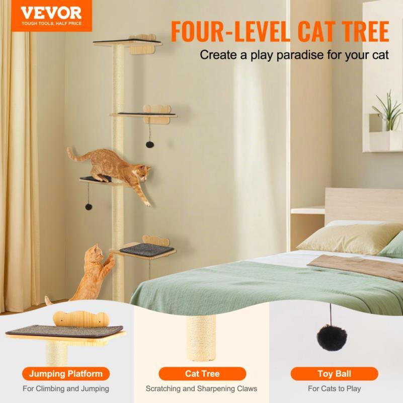 Cet arbre mural pour chat offre 4 niveaux pour grimper, jouer et se reposer.