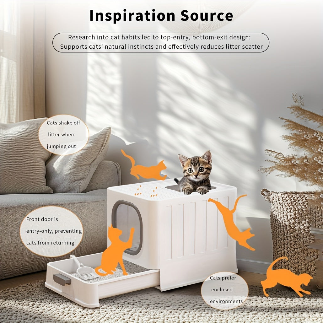 Ce bac à litière fermé dispose d’une entrée frontale et supérieure, adaptées aux chatons comme aux chats adultes.