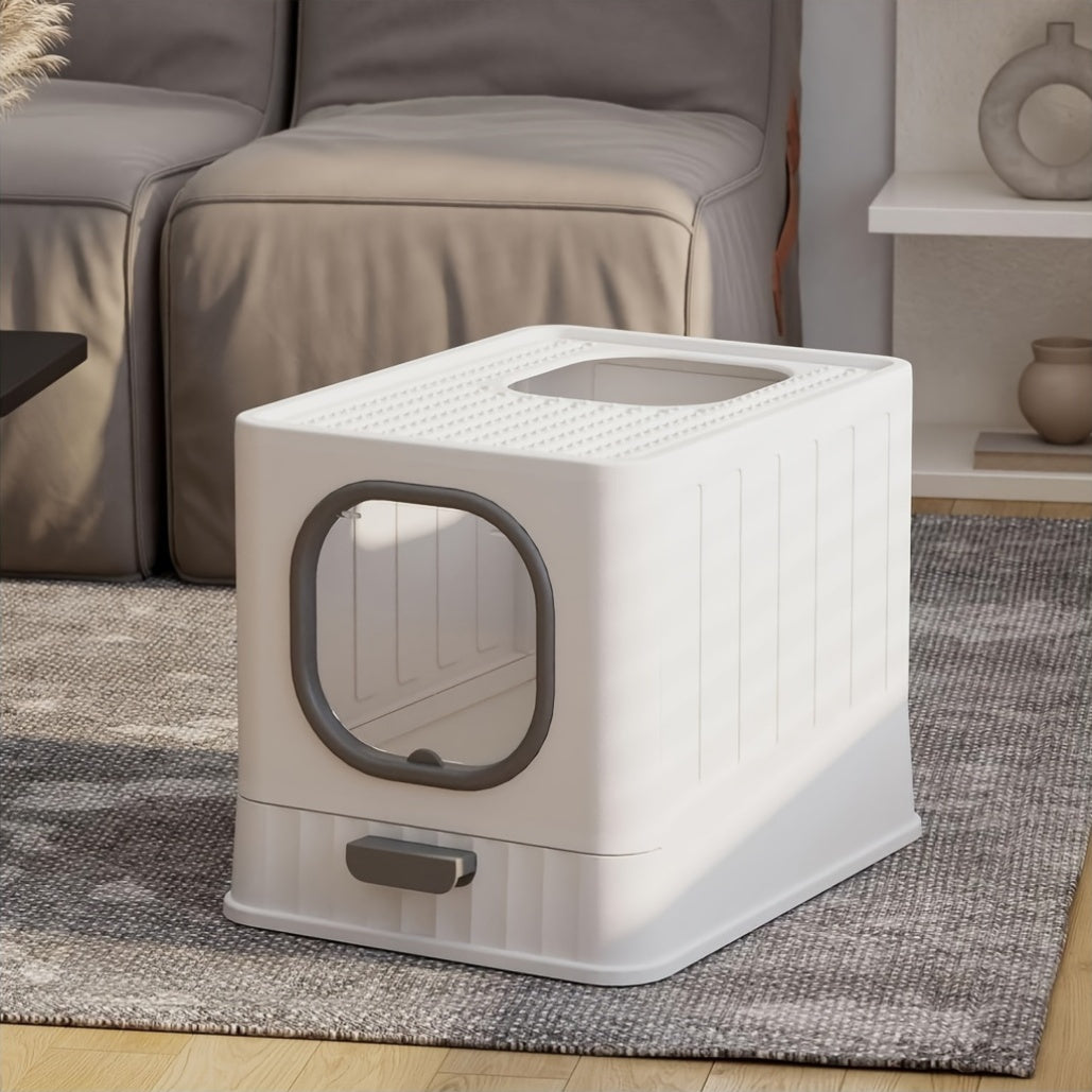 Le système de tiroir autonettoyant rend le nettoyage simple et rapide, réduisant les odeurs et gardant l’environnement sain. Le design fermé limite la dispersion de la litière et offre un espace intime au chat.