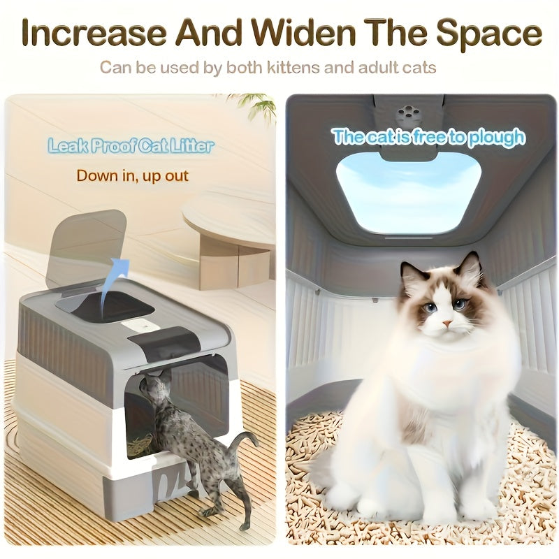 Avec son espace intérieur large, ce bac convient aussi bien aux chatons qu’aux grands chats. L’entrée basse frontale et l’accès supérieur permettent au chat d’entrer et sortir facilement.
