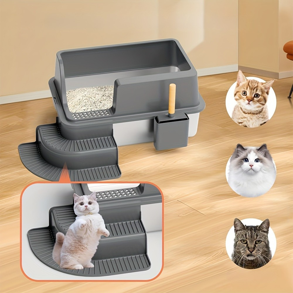 Ce bac à litière en acier inoxydable est équipé de marches antidérapantes idéales pour chatons, adultes et chats âgés.