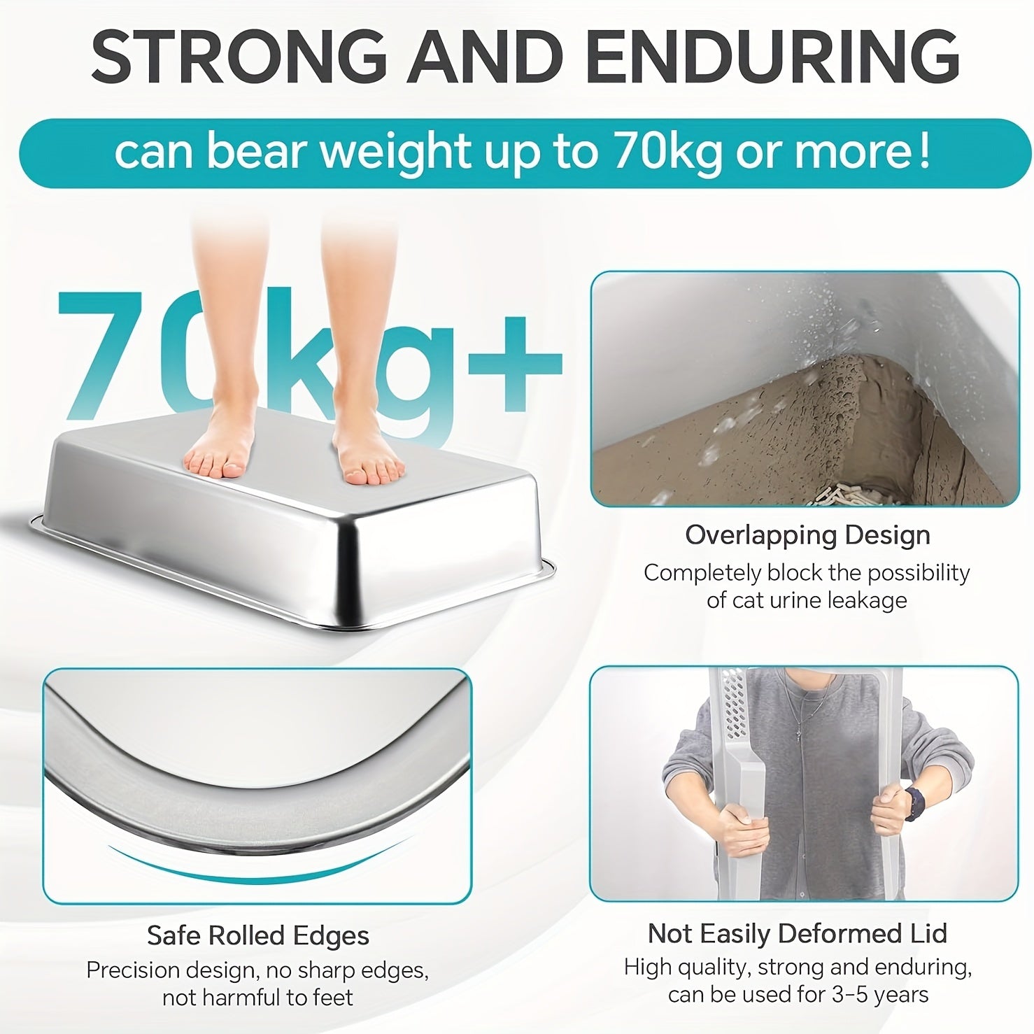 Offrez à votre chat un bac à litière en inox spacieux, avec marches intégrées et parois hautes, conçu pour hygiène optimale et entretien réduit.