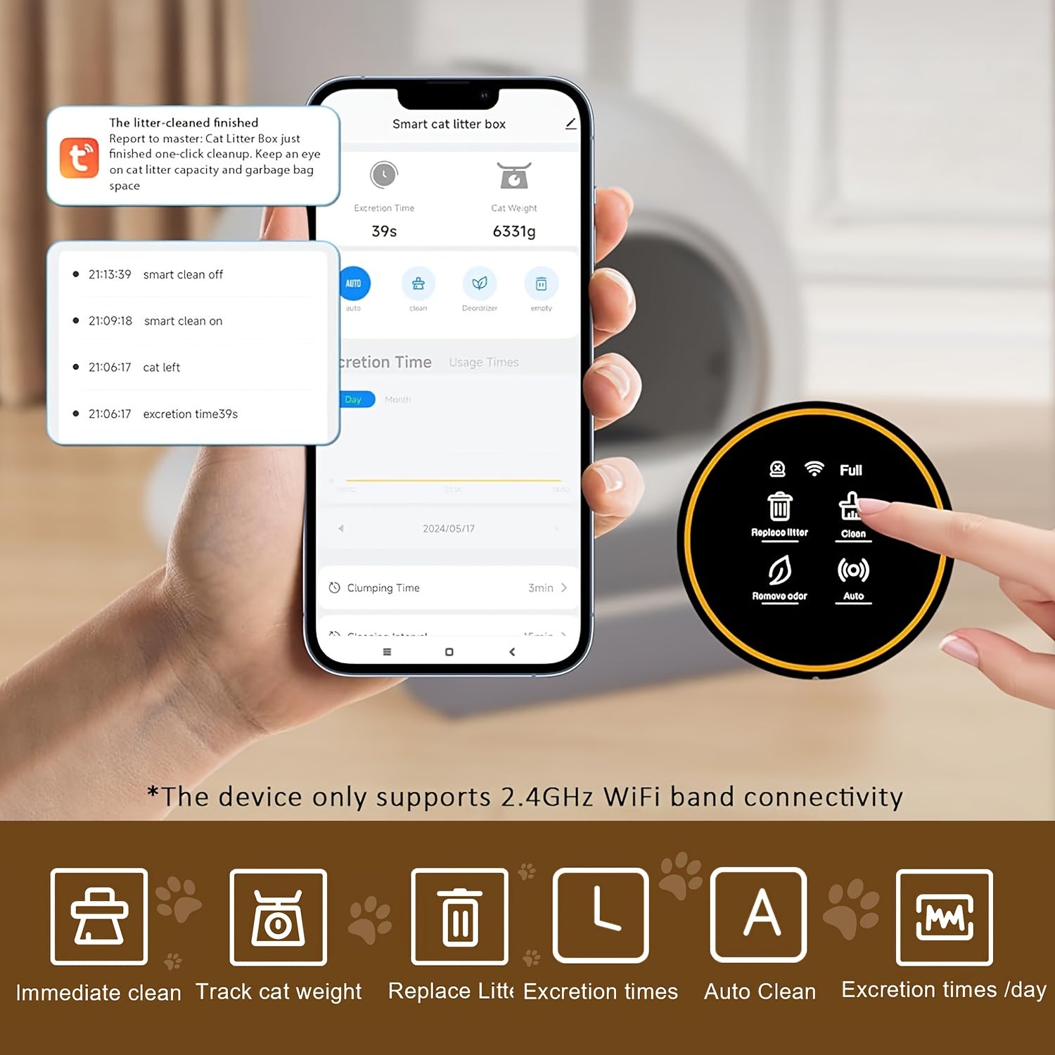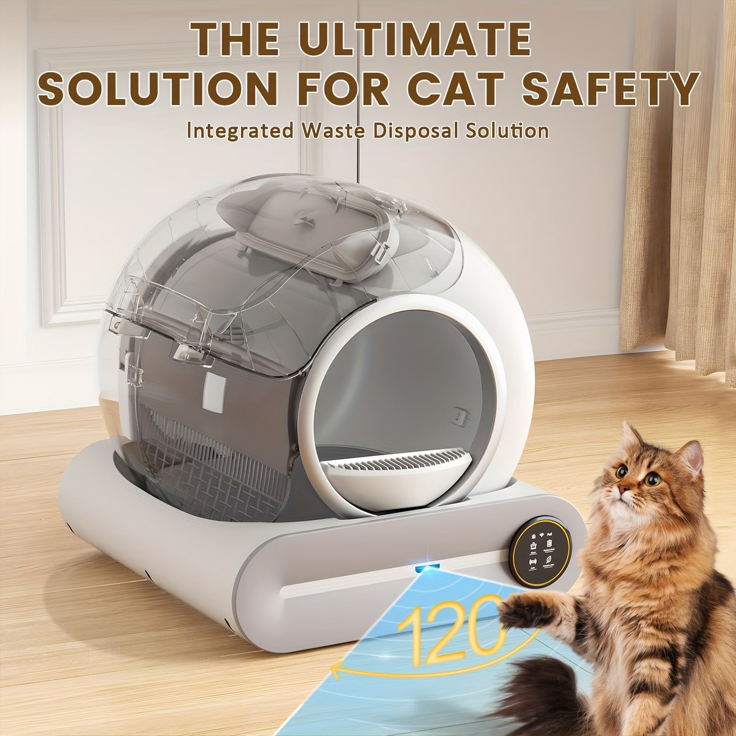 Ce bac à litière intelligent se contrôle via application mobile pour un suivi du poids, des passages et du nettoyage.