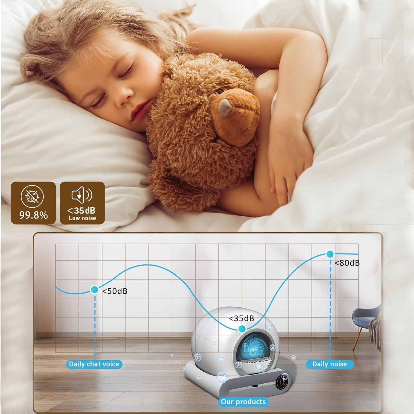 Offrez à votre chat un bac à litière robot automatique en PVC, connecté via application, avec stérilisation ionique, grande capacité et suivi santé pour une hygiène optimale.