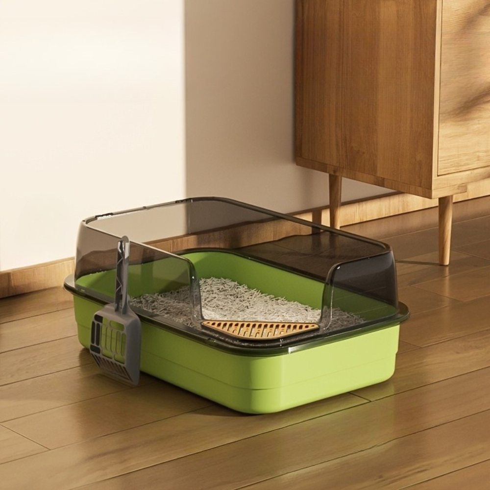 Choisissez ce bac à litière en plastique avec couvercle transparent amovible, offrant confort aux grands chats et entretien rapide, idéal pour plusieurs félins.