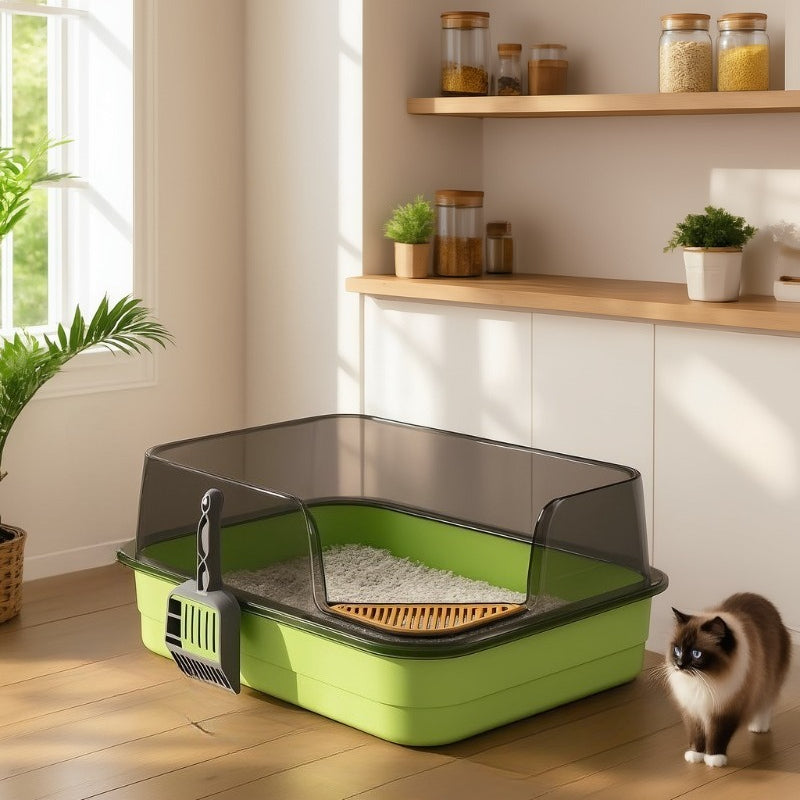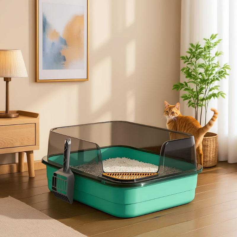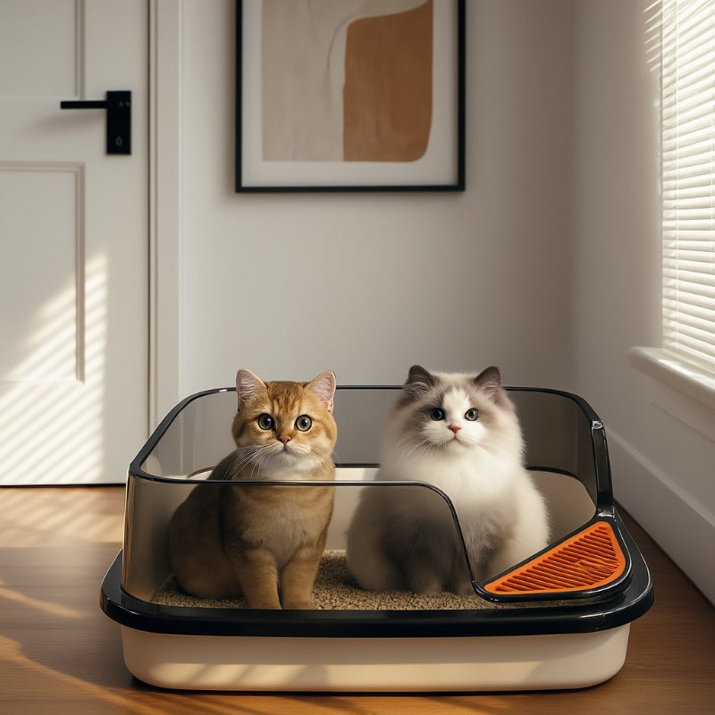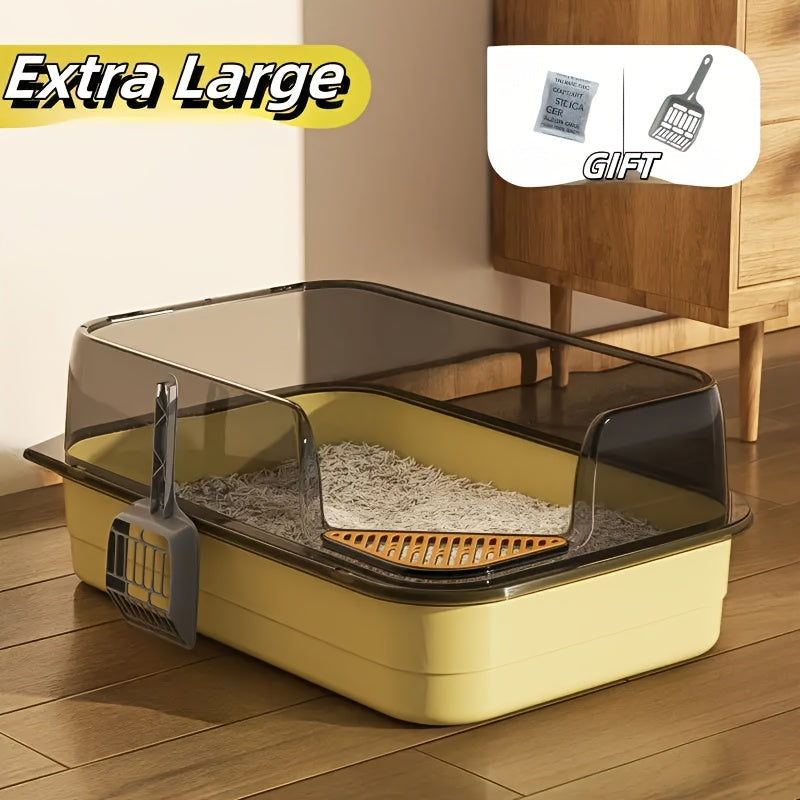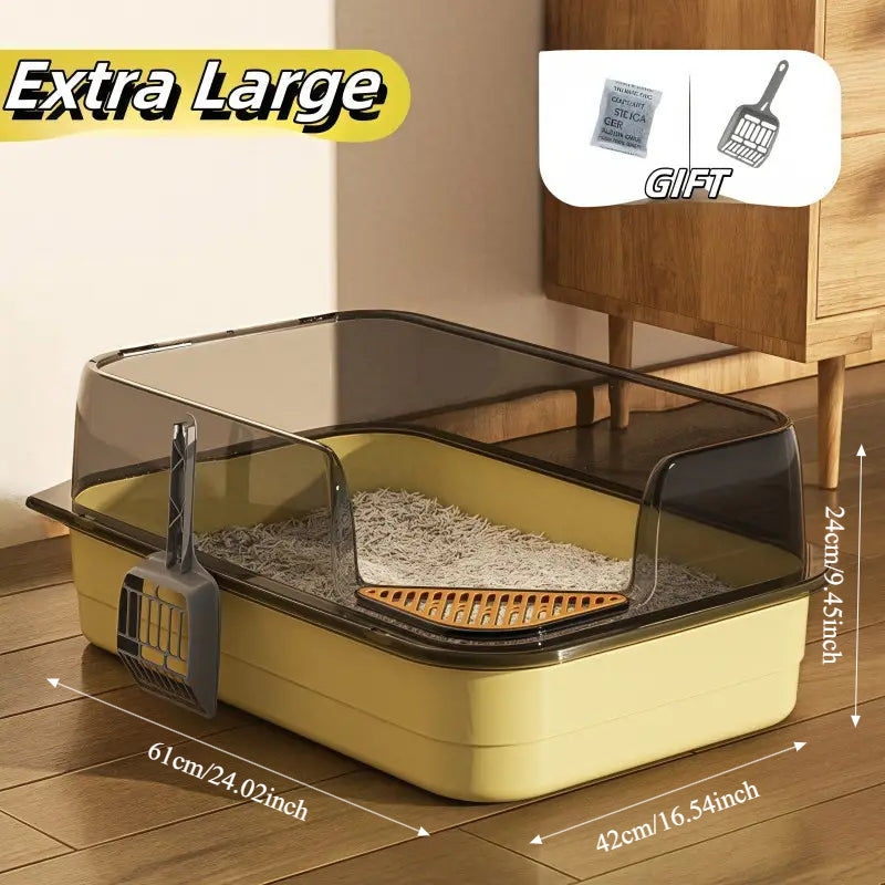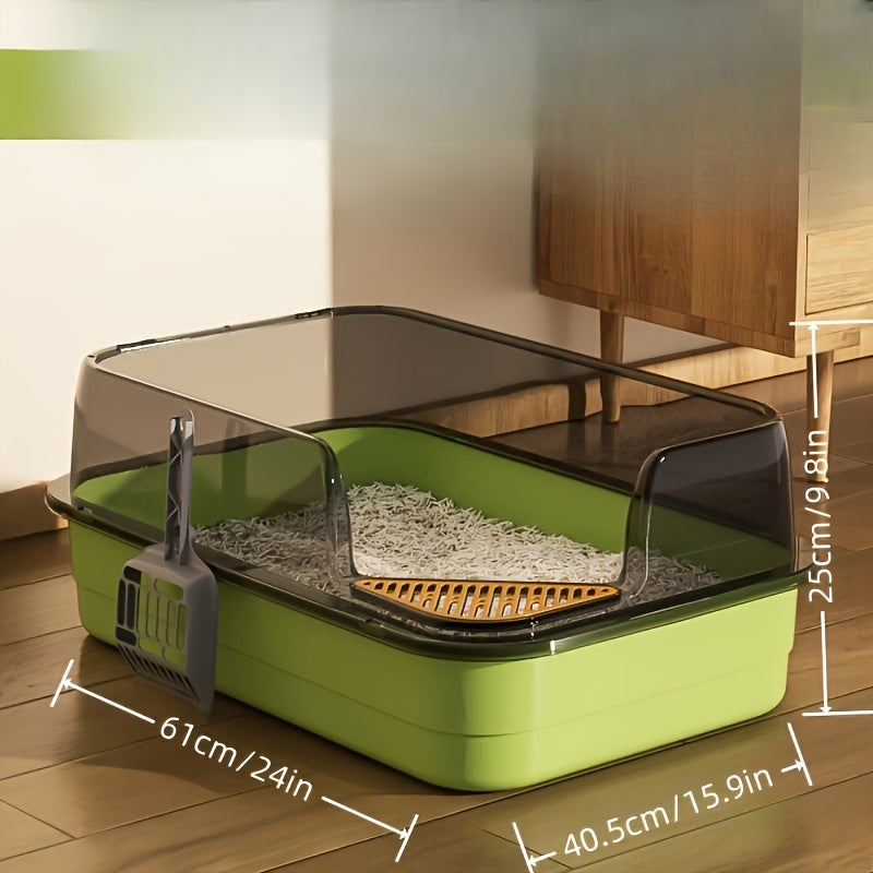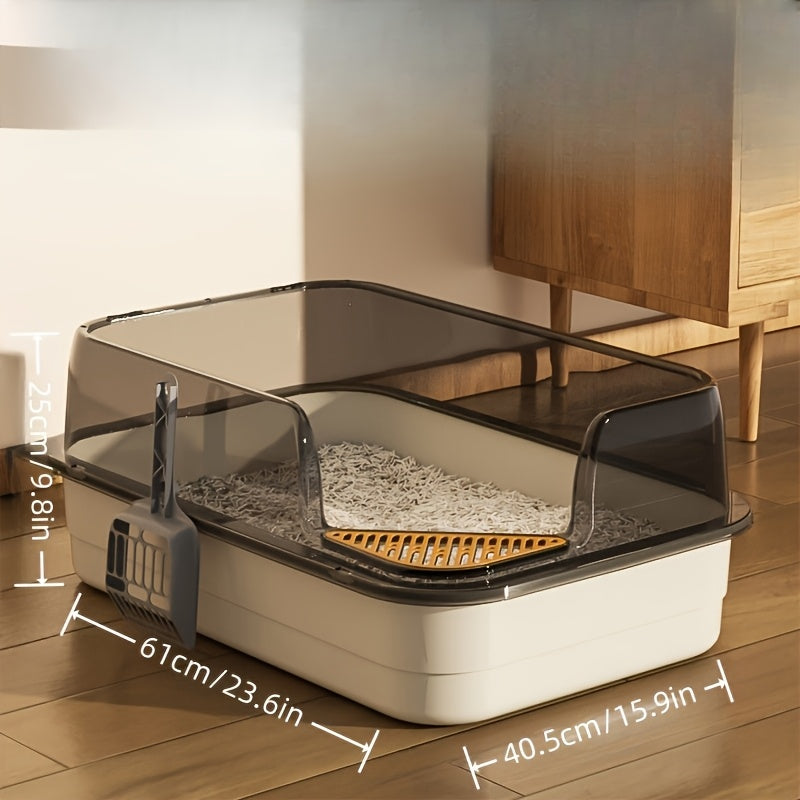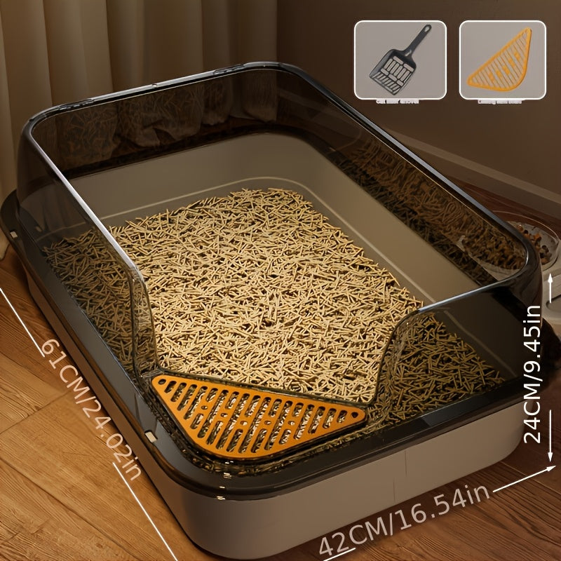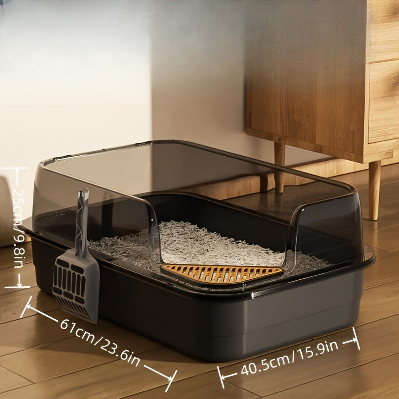 Ce bac à litière extra-large (60,9 × 40,3 × 16 cm) est spécialement conçu pour les chats de grande taille ou les foyers multi-chats. Fabriqué en PP résistant, il dispose de rebords hauts transparents pour limiter les éclaboussures et garder votre intérieur propre.