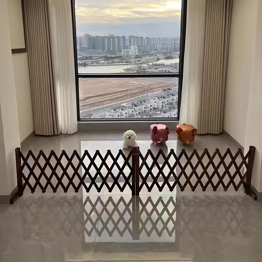 Barrière extensible en bois naturel idéale pour petits chiens. Design ajustable, facile à poser et élégante pour tous types d’intérieurs. Matériau massif et finition soignée.