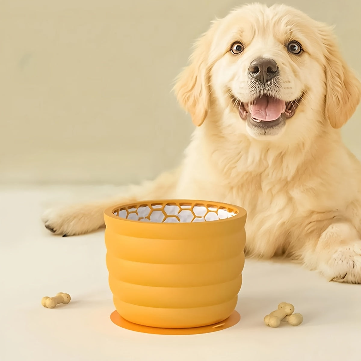 Ce bol à lécher cylindrique pour chien en silicone antidérapant favorise le calme, ralentit l’alimentation et améliore la digestion. Parfait pour toilettage et entraînement.