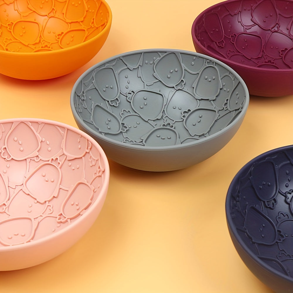 Bol à lécher pour chien en silicone texturé, idéal pour ralentir l’alimentation, réduire le stress et favoriser l’enrichissement. Léger, lavable, avec motifs ludiques.