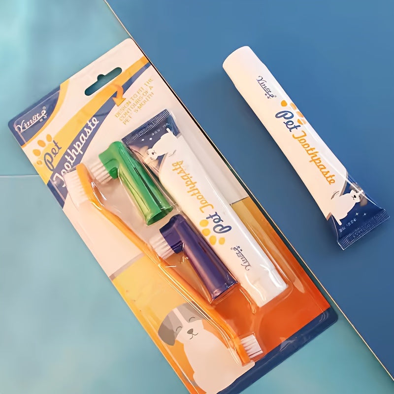 Prenez soin des dents de votre animal avec ce kit complet comprenant dentifrice, brosse et embouts souples. Idéal pour l’hygiène bucco-dentaire quotidienne.