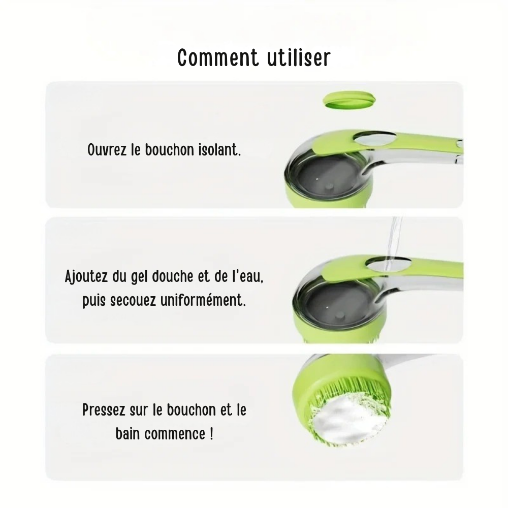 Le grip antidérapant et la pression douce en font un accessoire parfait pour un lavage sans effort.