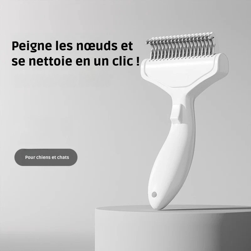 Ses lames en acier inoxydable éliminent les nœuds sans abîmer le pelage ni irriter la peau.