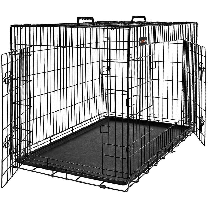 Cette cage pliable pour chien offre deux portes, un bac lavable et une séparation mobile.