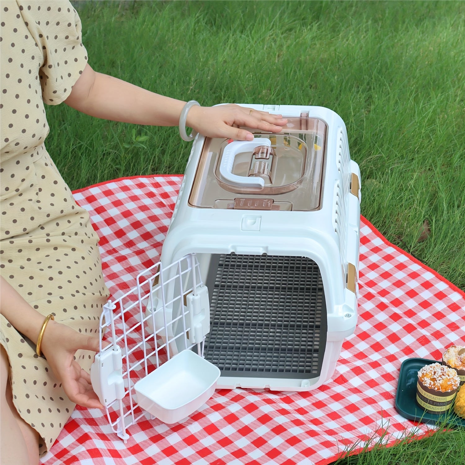 Grâce à sa porte grillagée sécurisée, votre chat reste en sécurité tout en gardant une bonne visibilité et un flux d’air continu.