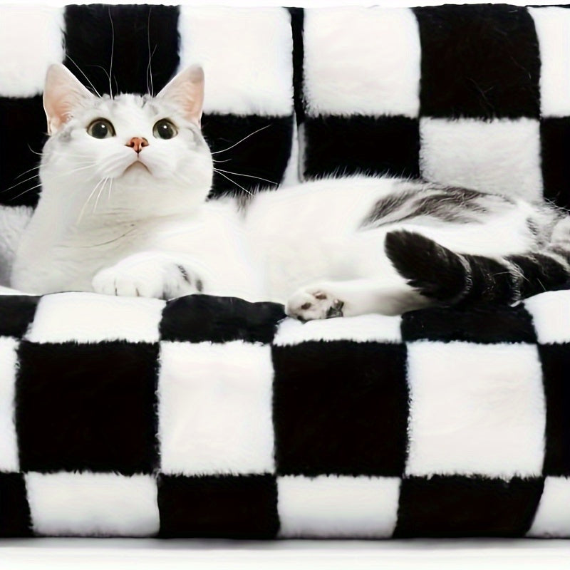 Ce canapé pour chien en peluche à motif carreaux noir et blanc est à la fois chic, confortable et antidérapant. Idéal pour les chiens de petite à moyenne taille, ou pour les chats.