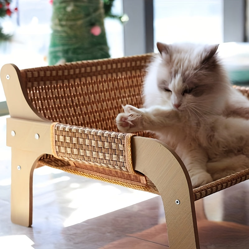 Le rotin tressé résiste aux griffes, à l’humidité et à l’usure.