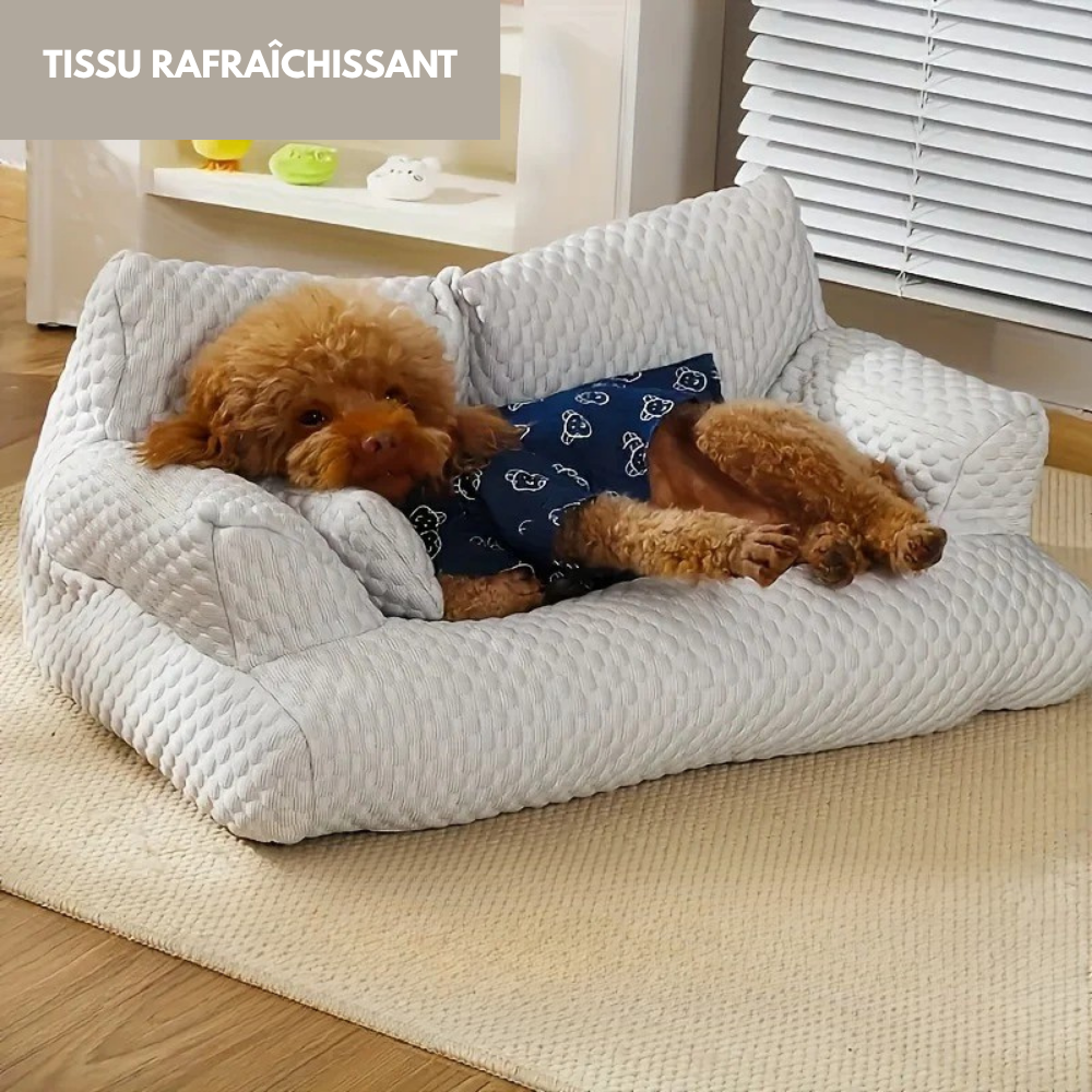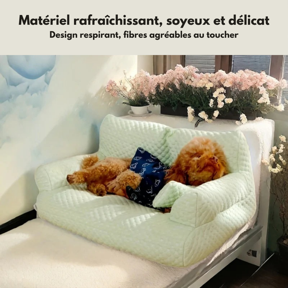 Ce canapé rafraîchissant pour chien, en tissu Ice Bean respirant, offre un confort moelleux et durable. Lavable, anti-griffure, idéal pour l'été et toutes saisons.