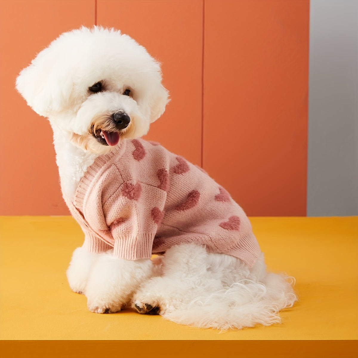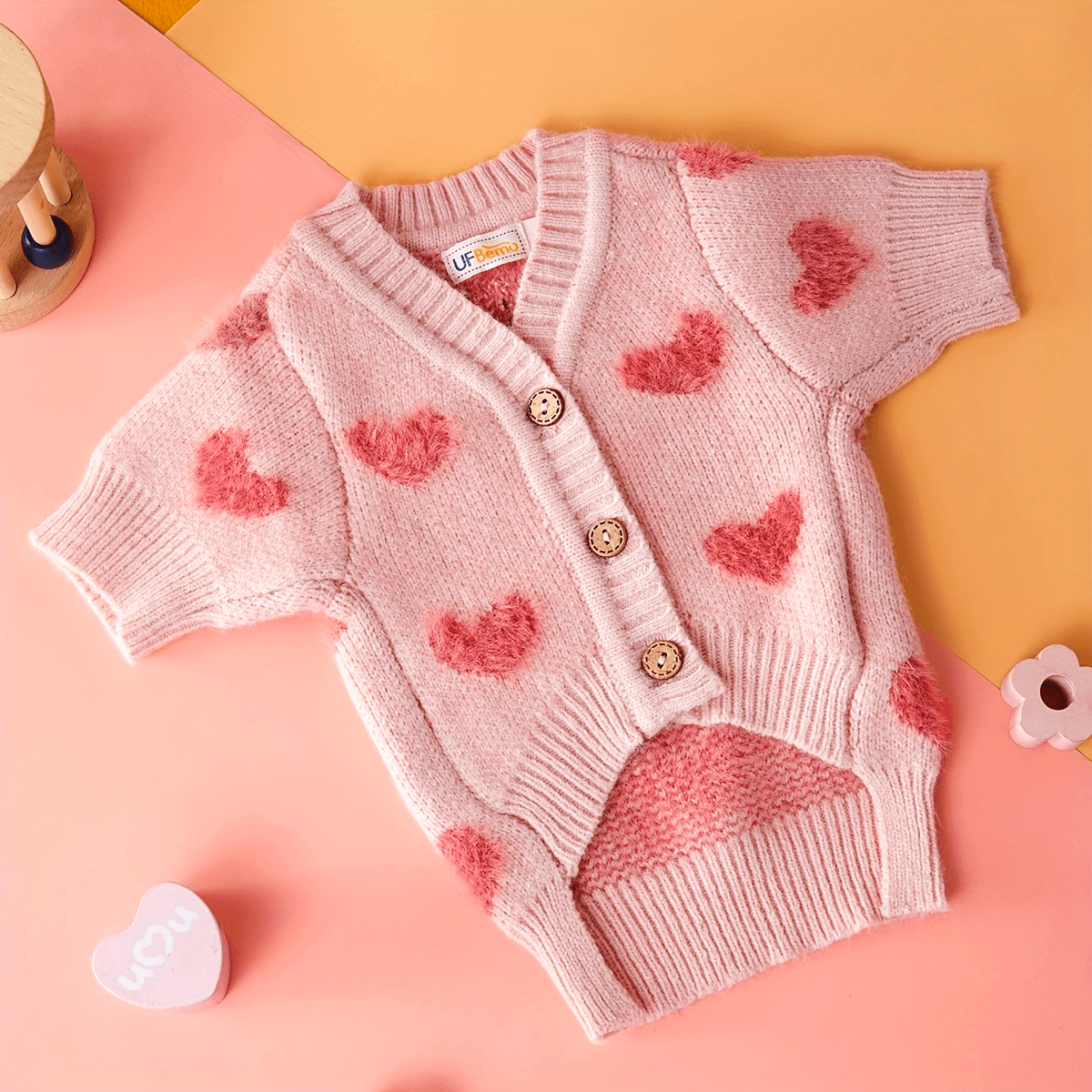 Cardigan Rose à Cœurs pour Chiens et Chats – Tricot Doux Boutonné