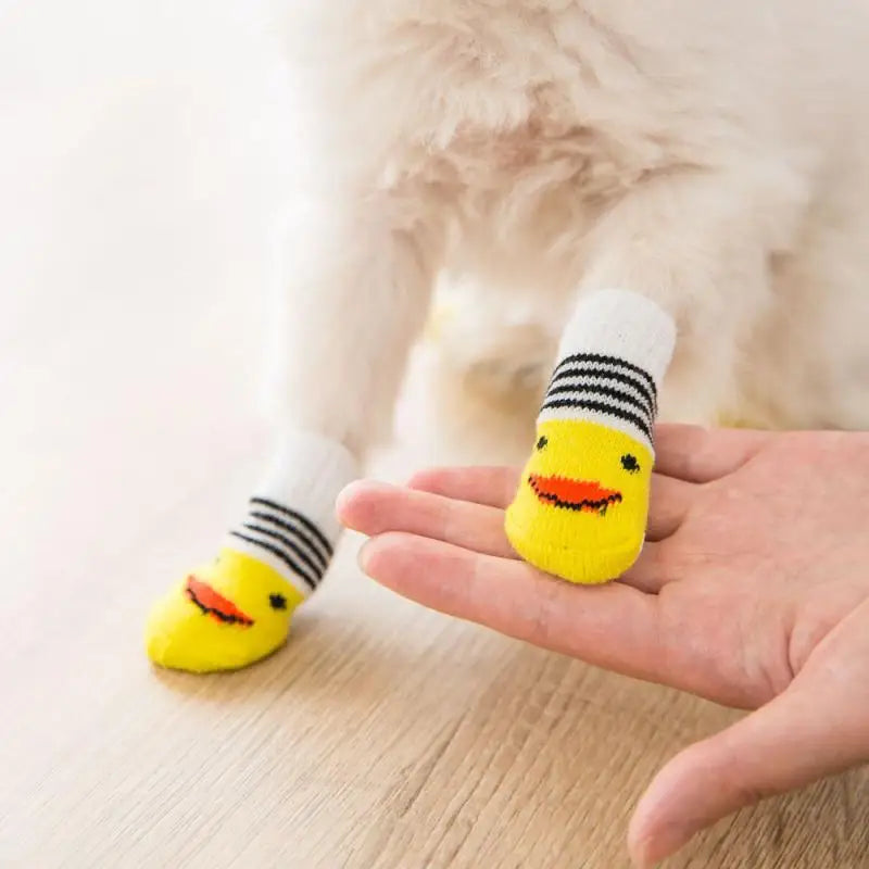 Chaussettes Antidérapantes Motif Canard pour Chiens et Chats – Lot de 4