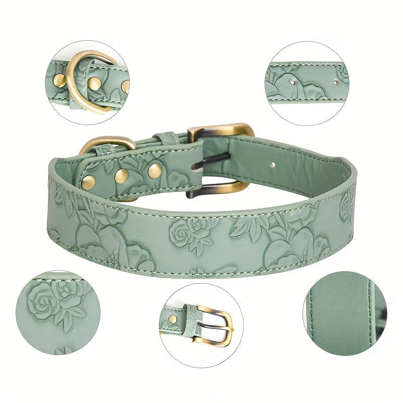 Ce collier pour chien en cuir floral allie design embossé élégant et cuir PU imperméable. Facile à entretenir, doux et chic, c’est un must-have pour les promenades stylées.