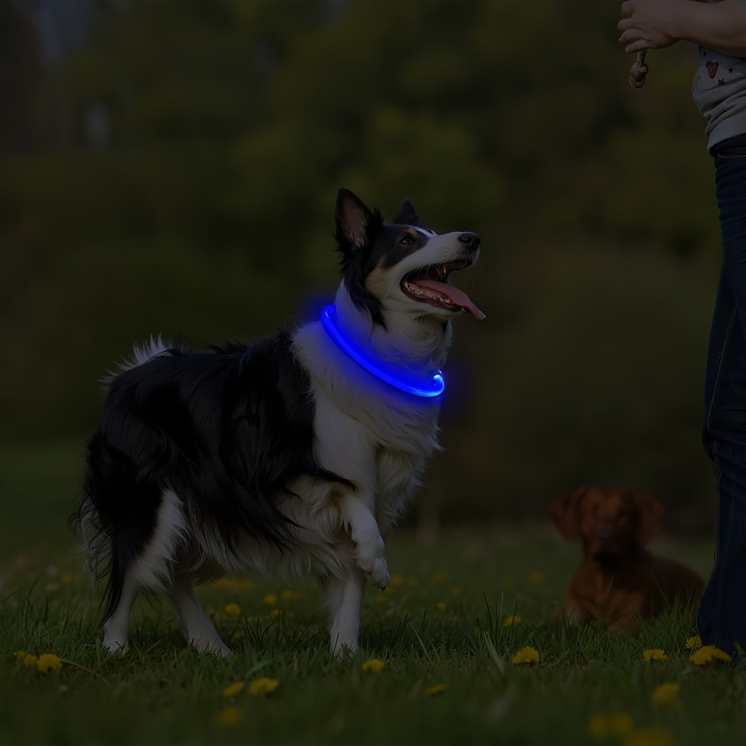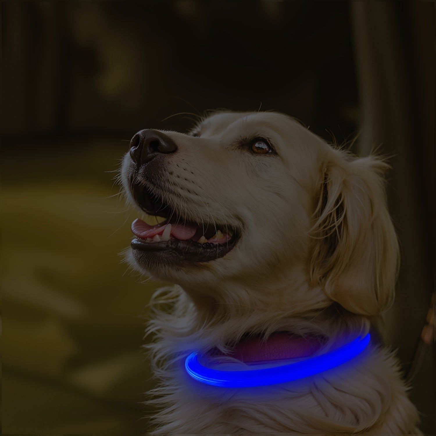 Ce collier lumineux multicolore en PVC rechargeable par USB garantit une visibilité jusqu’à 100 mètres, même sous la pluie. Parfait pour les promenades de nuit !