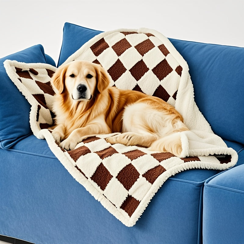 Couverture chaude et résistante pour chien ou chat, avec motifs damiers ou nuages selon le modèle. Ultra douce, anti-déchirure et parfaite pour les quatre saisons. Lavable en machine.