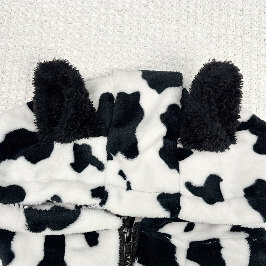 Ce hoodie animalier pour chien en flanelle polyester offre chaleur et style. Motifs vache ou tigre, capuche intégrée. Gamme vêtements chauds hiver pour chiens grands.