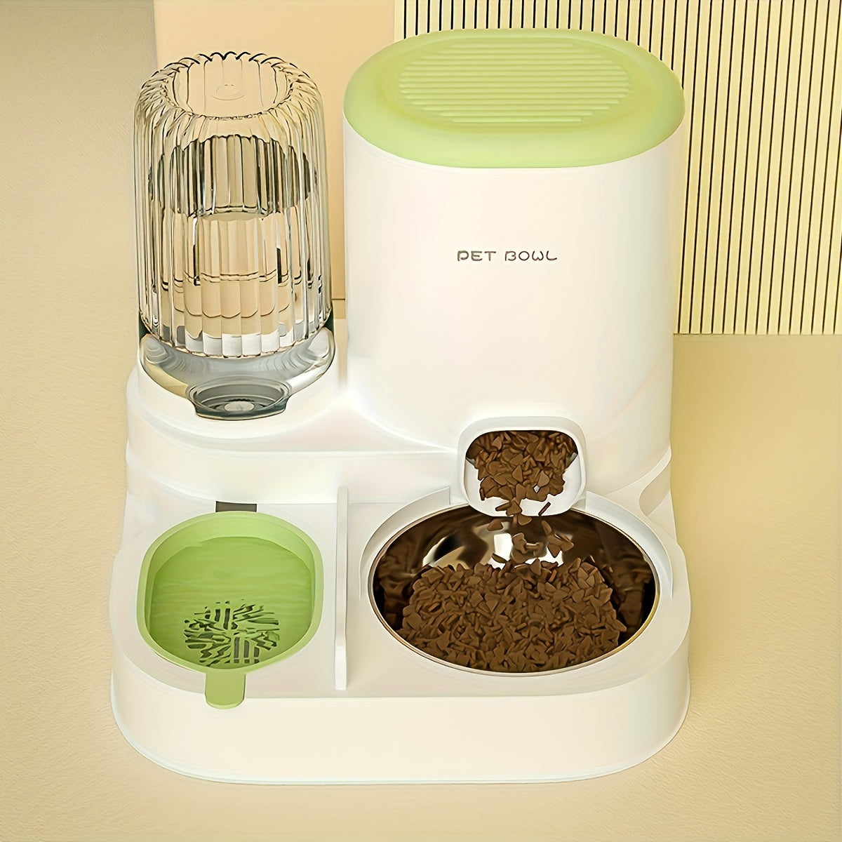 Offrez à votre chat un distributeur automatique 2-en-1 pratique, avec bol en inox et réservoir d’eau intégré, facile à nettoyer et idéal pour une utilisation quotidienne.