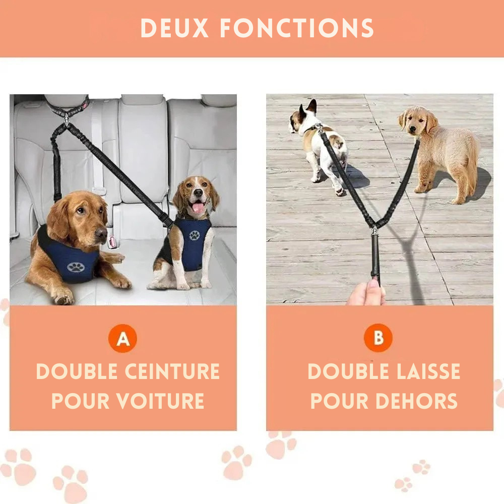 Facile à utiliser, anti-traction, lavable, et confortable pour deux chiens à la fois.