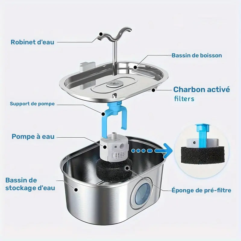Double Fontaine Inox Jet pour Chien et Chat