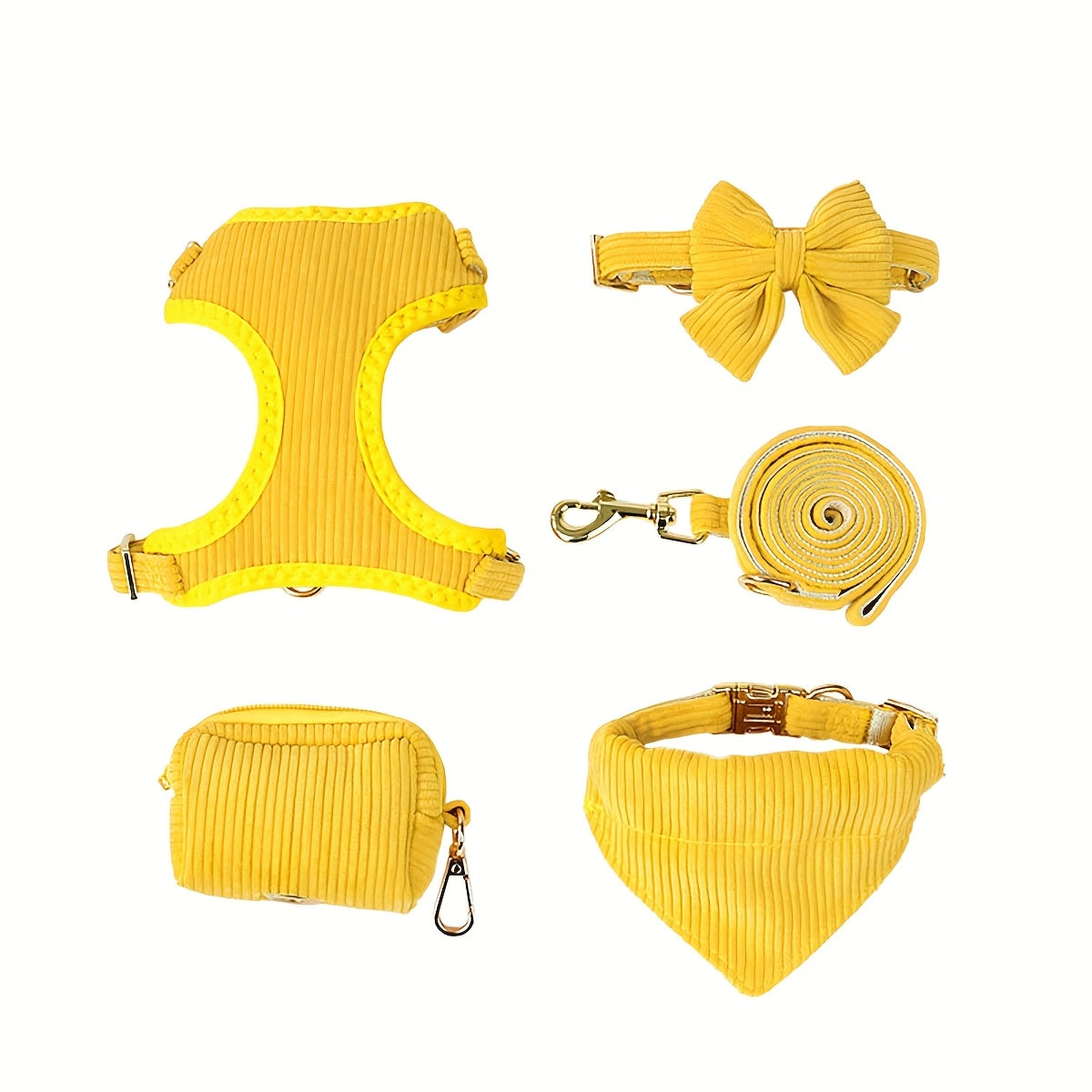 Ensemble Harnais et Accessoires en Velours Côtelé pour Chiens et Chats – 5 Pièces