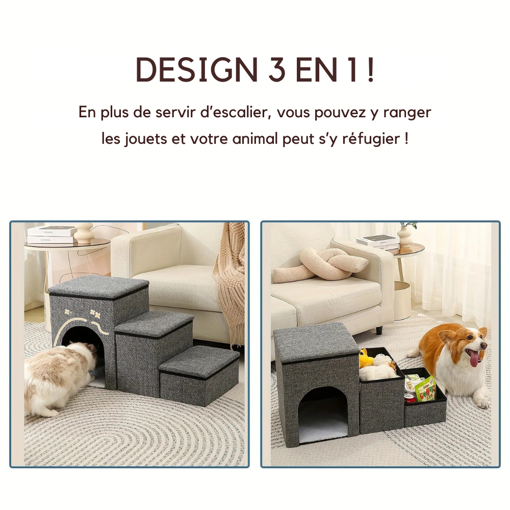 Escalier de Rangement pour Animaux 3 en 1