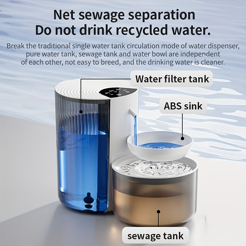 Fontaine automatique de 3L avec batterie rechargeable 2000mAh, filtre intégré, évacuation intelligente des impuretés et eau fraîche constante pour chats et petits chiens.