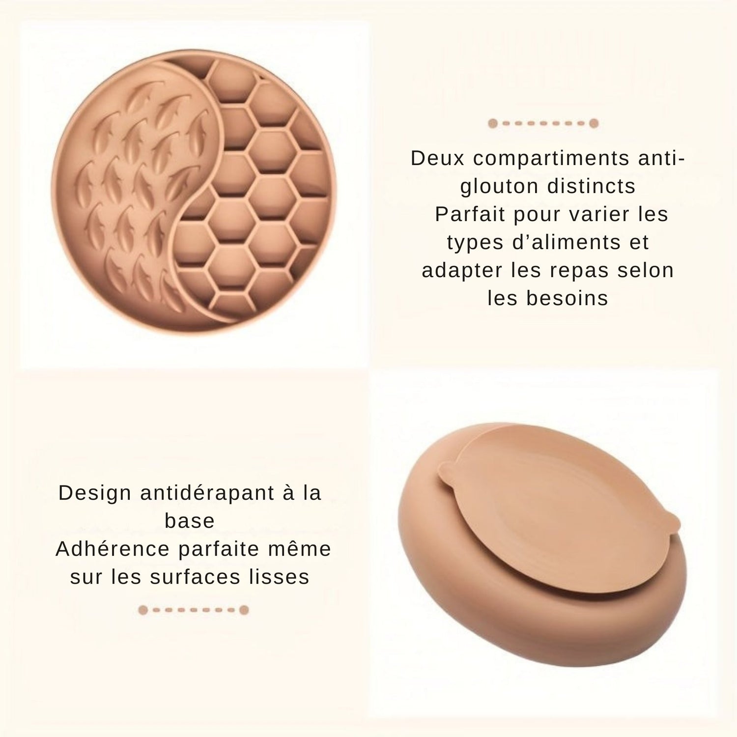 Gamelle Anti-Glouton en Silicone avec Ventouse – Design Alvéolé et Léchage