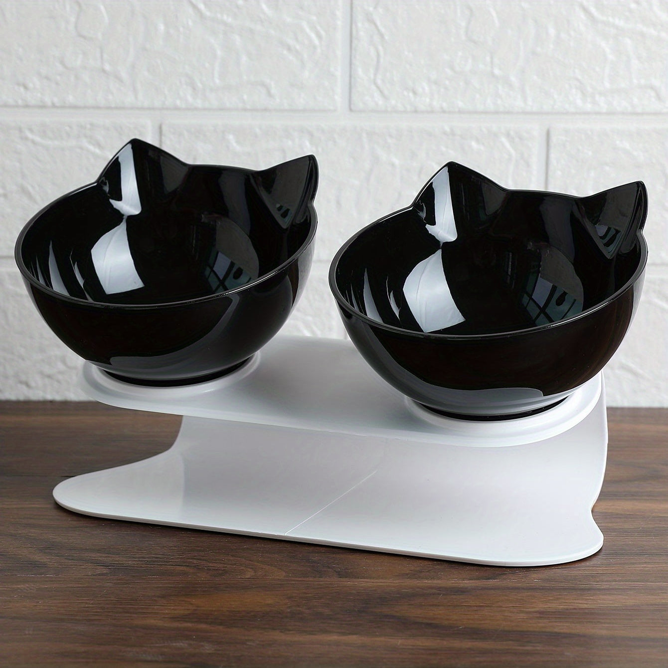 - Forme : Support incliné avec deux bols ronds en forme d’oreilles de chat