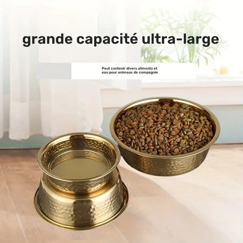 Inspirée de l’univers des accessoires haut de gamme, cette gamelle martelée est parfaite pour les animaux choyés.
