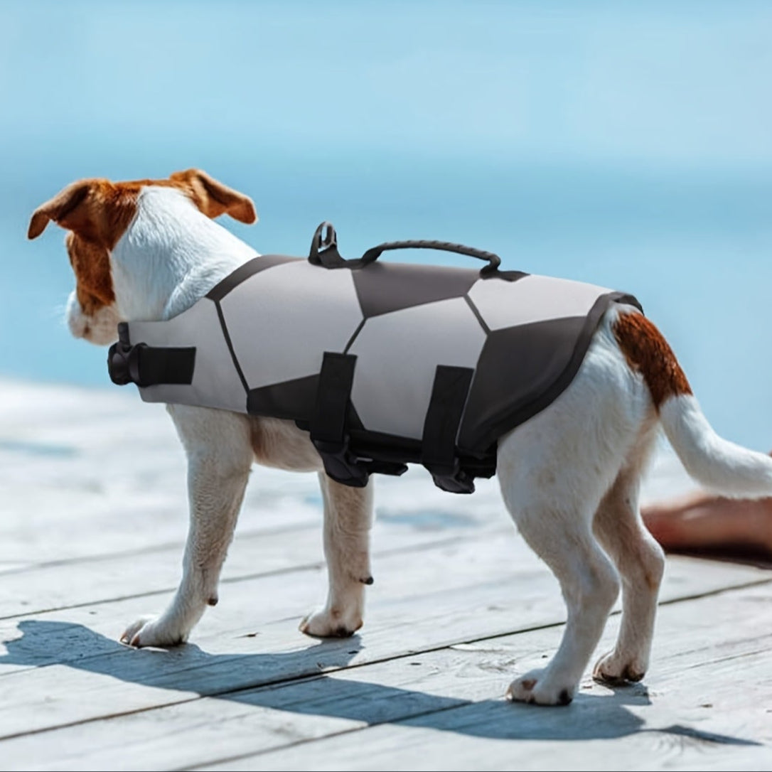 Offrez à votre chien sécurité et style avec ce gilet de sauvetage en polyester, au motif football. Réglable et flottant, il est idéal pour l'été et les sorties en eau.